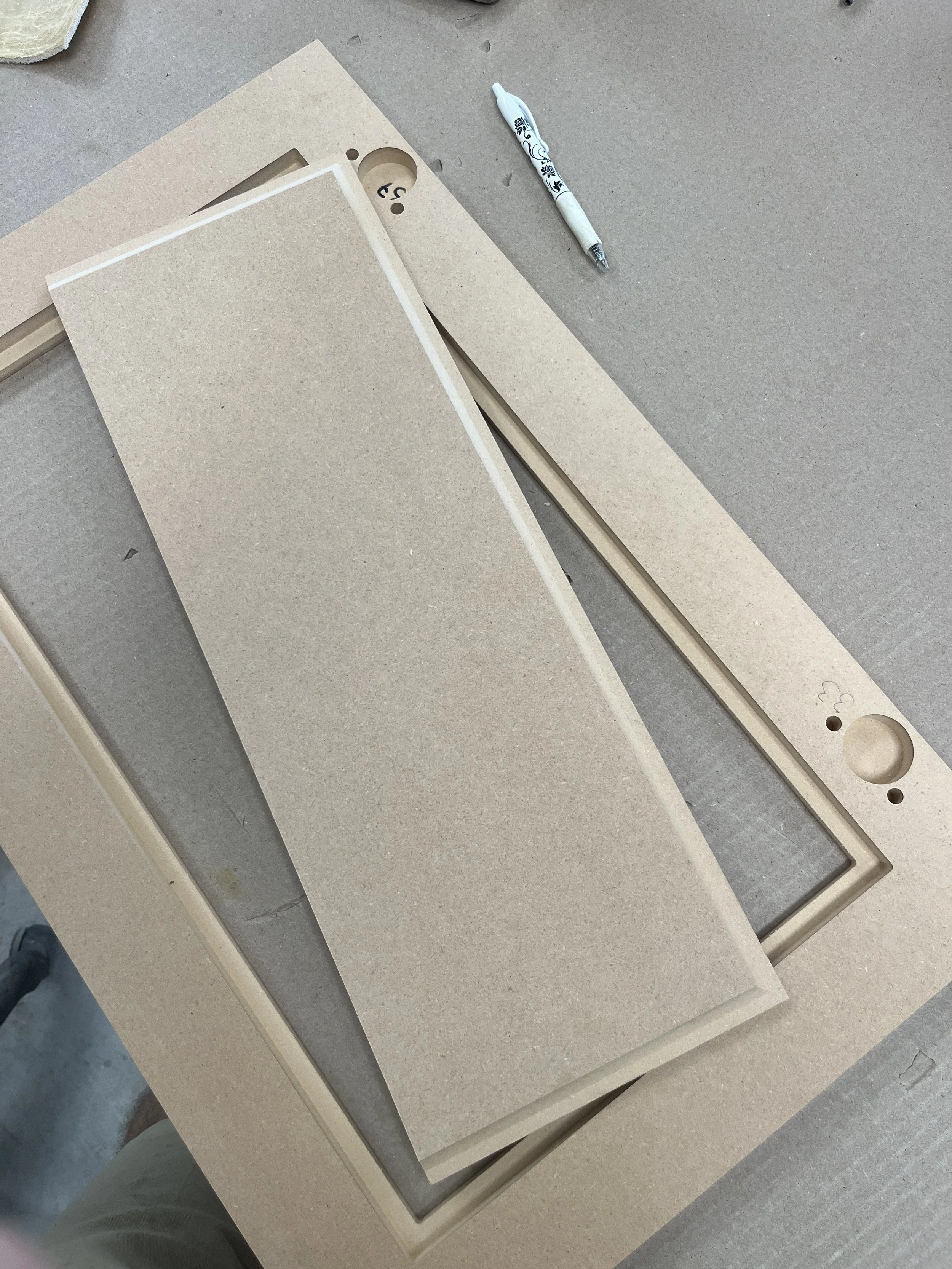 Armorite’s ability to be machined (cut on a CNC router) and it’s water resistant qualities make it a great option for cabinet doors, because it saves so much labor, and for you as the buyer, cost. Once it is painted, it is hard to tell it apart from a standard wooden framed door.