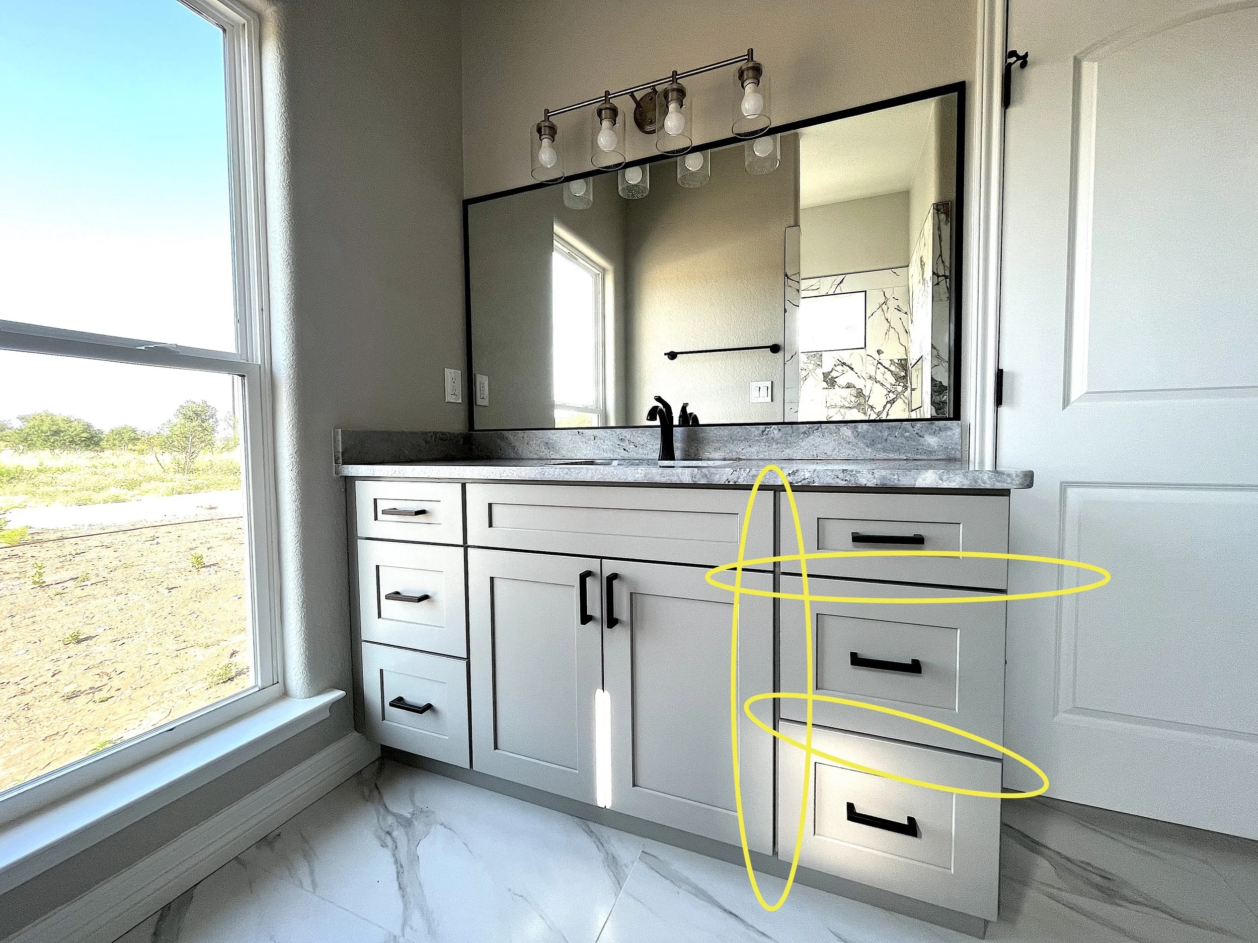 When we use the word reveal, we are referring to the space around the doors and drawer fronts. Reveals can be used to create different aesthetics. For faceframe cabinets, our custom cabinets have a 1” reveal and prefab have 1/2” reveal. By having a larger reveal, you can create a cabinet face with depth for that classic-heirloom cabinetry look. For a more modern and sleek aesthetic, full overlay (or frameless) cabinets have a reveal of 1/8”. On these cabinets, the entire face is made up of the doors and drawer fronts.